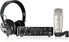 Комплект Behringer U-Phoria Studio PRO разработан специально для записи музыки и вокала. В его состав входят двухканальный USB-интерфейс U-PHORIA UMC202HD, микрофон конденсаторного типа C-1, студийные наушники HPS5000, микрофонный кабель XLR, кабель USB, а также держатель для микрофона.