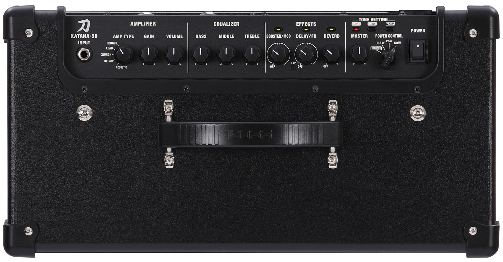 Доведенные до совершенства инженерной командой BOSS пять режимов усиления Katana-50 позволяют перекрыть весь диапазон тембров, начиная с органичных классических, и заканчивая современными с высоким усилением. Режим Clean характеризуется естественным прозрачным звуком, в то время как Crunch — жестким. Режим Lead, чтобы удовлетворить требованиям максимального количества музыкальных стилей, позволяет работать в широком диапазоне усиления для получения как "жирных" пронзительных блюзовых соло, так и тягучих легато. Режим Brown (DNA) заимствован у усилителей серии Waza и предлагает усовершенствованный тембр с высоким усилением, востребованный известнейшими рок-музыкантами с мировой известностью. Режим Acoustic является продолжением курса Katana на универсализацию и позволяет добиваться предельно естественного звучания при использовании электроакустических гитар.