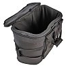 Открывается верхняя грань, объёмный и плоский наружные карманы, можно носить как рюкзак, 2 жестких грани с ножками, ручки в двух плоскостях.