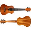 Верхняя дека сделана из массива махагони, которое недаром ценится в качестве материала для изготовления музыкальных инструментов. Кроме красивой текстуры, естественного блеска и красивого цвета с золотистым отливом, это дерево славится мягким звуком и хорошим сустейном. Что делает данную укулеле превосходным инструментом для аккомпанирования вокалу.